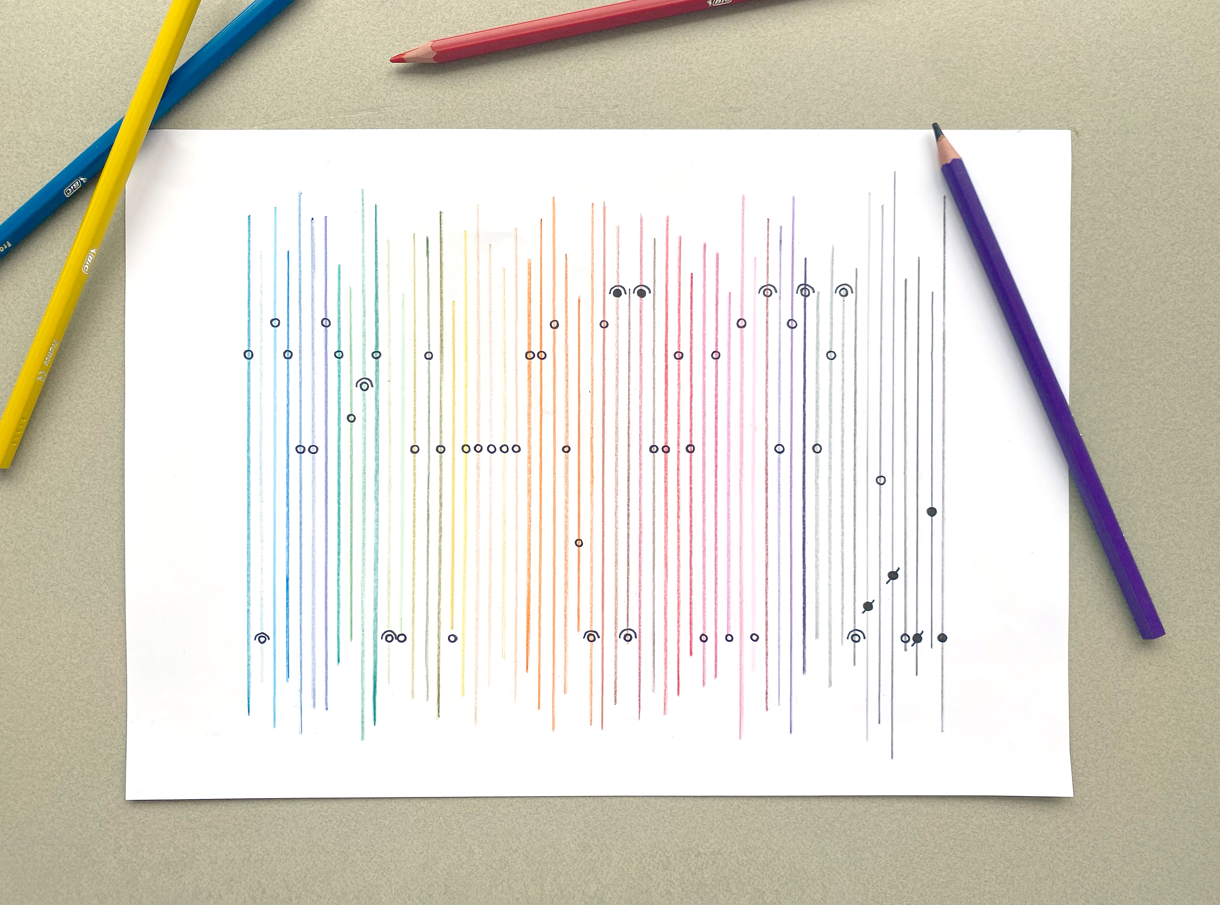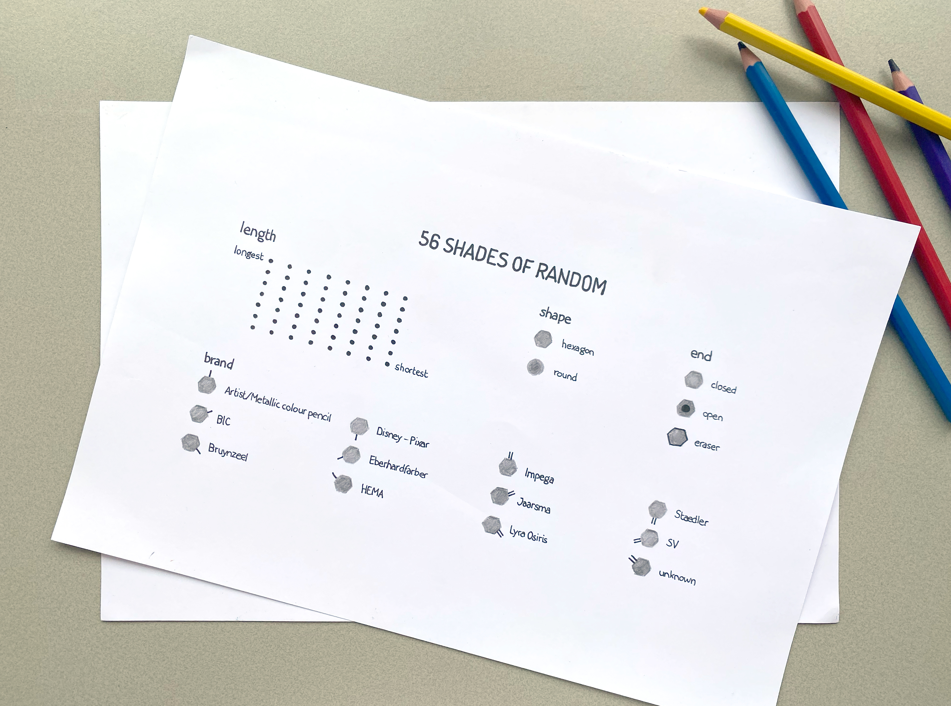 I started with two handfuls of pencils pulled from a jar. From there, I mapped out their different characteristics: from the intensity of their pigment to the shape of their tip. The result is a two-part piece that tells different stories about these pencils. It may not be the deepest study, but it leads to a surprising outcome, one that I hope to make people stop for a moment.