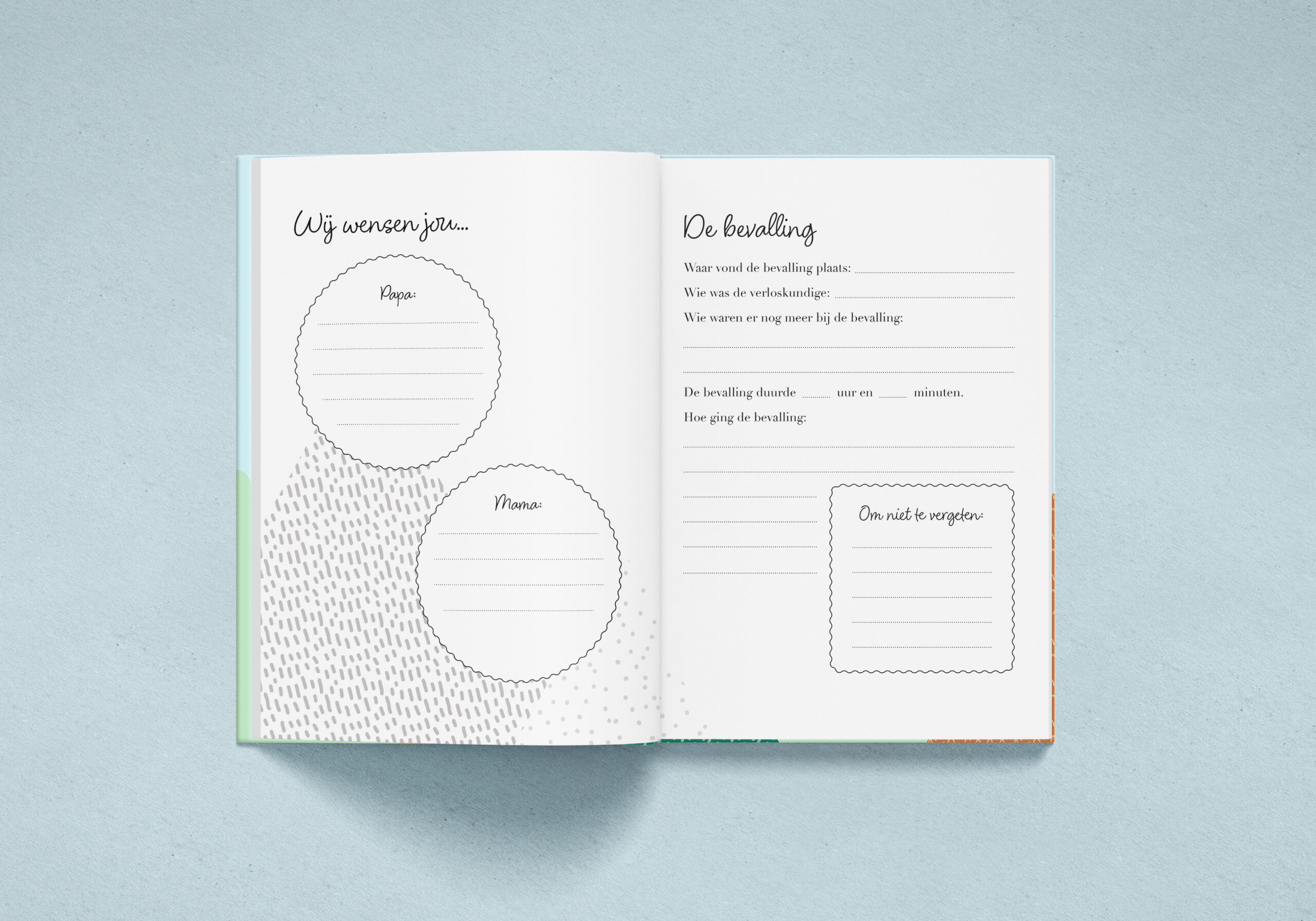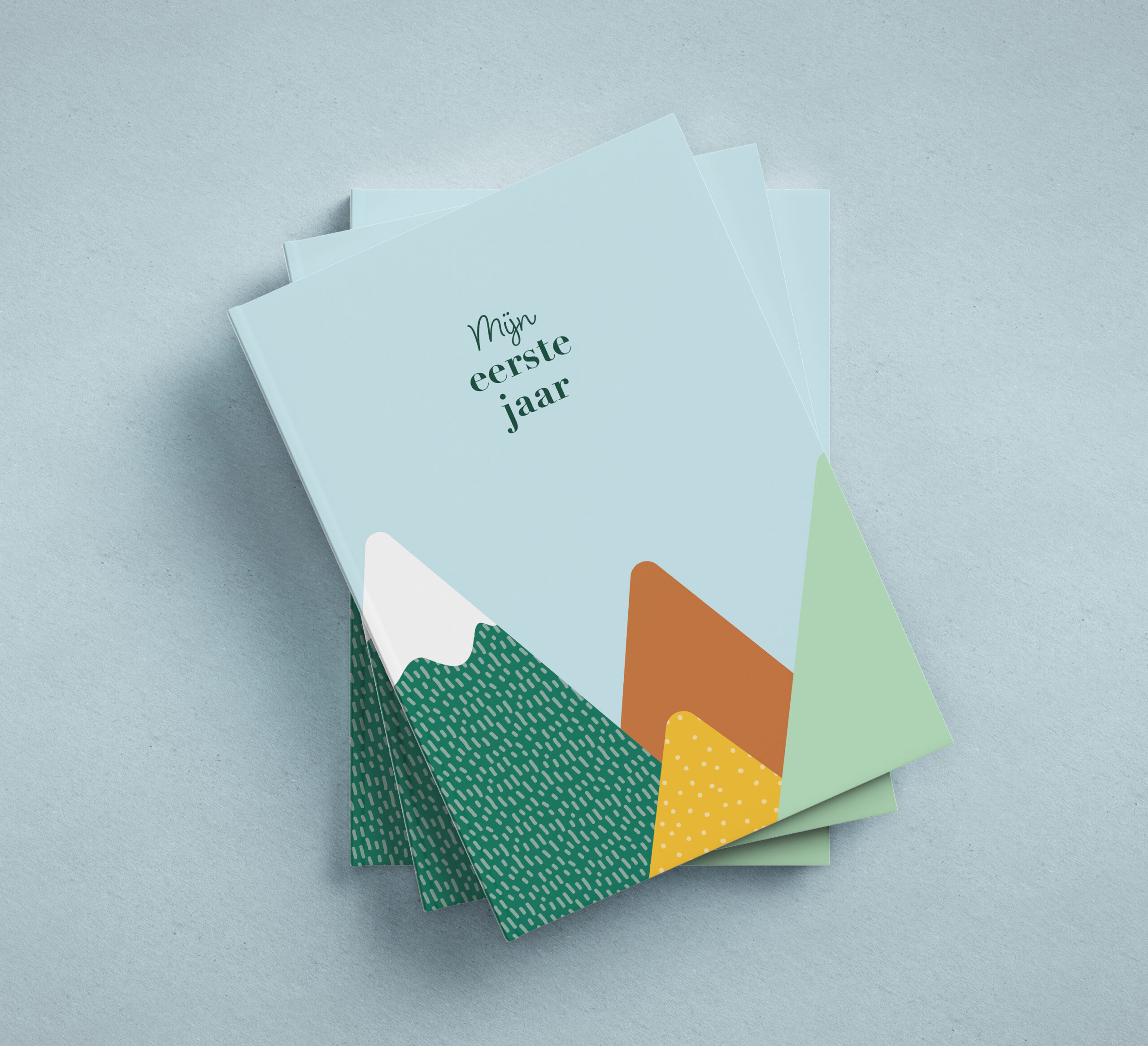 Het project groeide uit tot een complete set. In dezelfde stijl ontstond een eerstejaarsboek waarin herinneringen, details en mijlpalen van het eerste jaar vastgelegd kunnen worden. Zowel de vormgeving als de opbouw van het boek zijn zorgvuldig ontworpen, zodat inhoud en uitstraling in balans zijn.