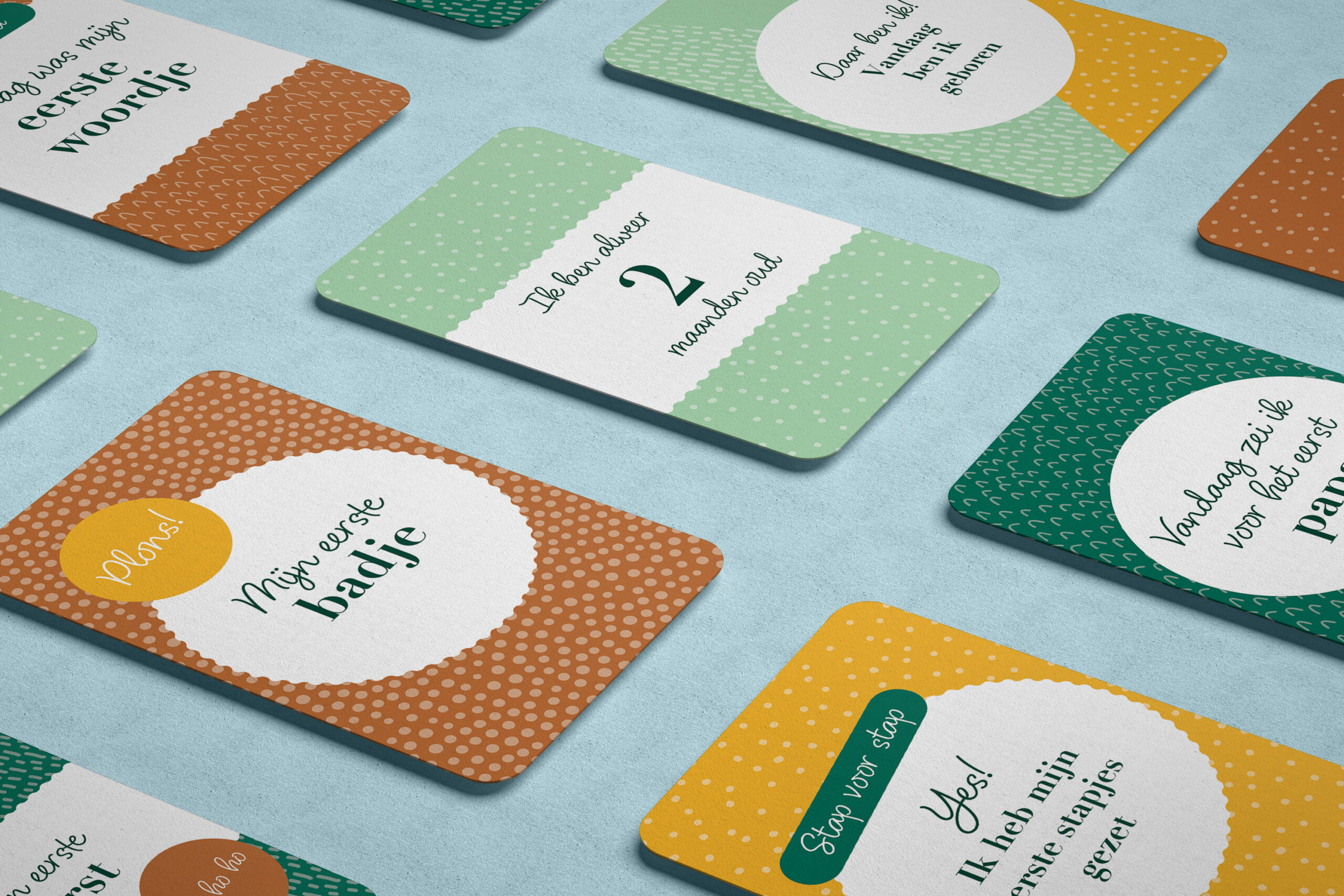 Aanvullend is er een set mijlpaalkaarten ontworpen, bedoeld om belangrijke momenten zichtbaar te maken op beeld. Samen vormen de onderdelen één geheel, waarin stijl, toepassing en gebruik elkaar versterken.