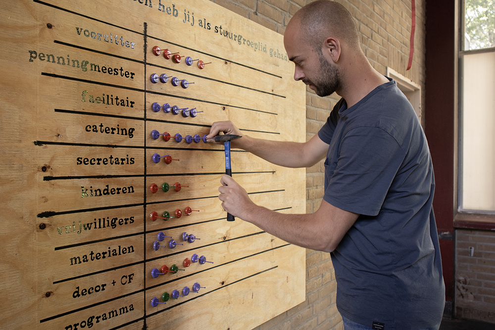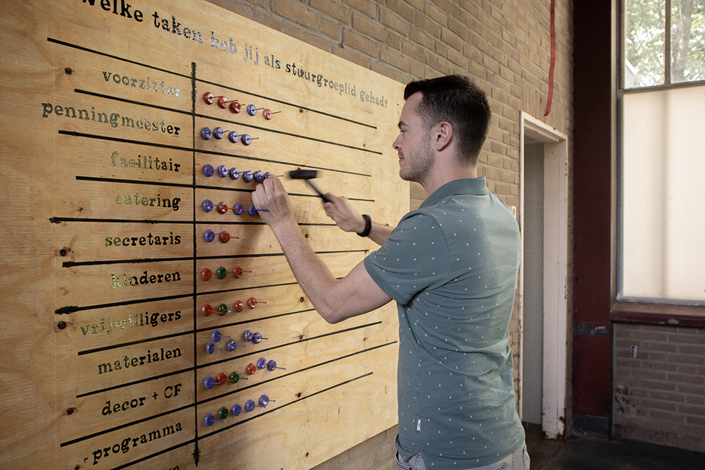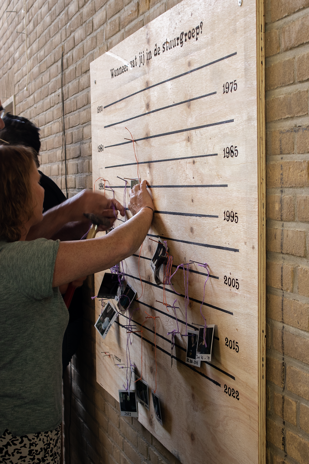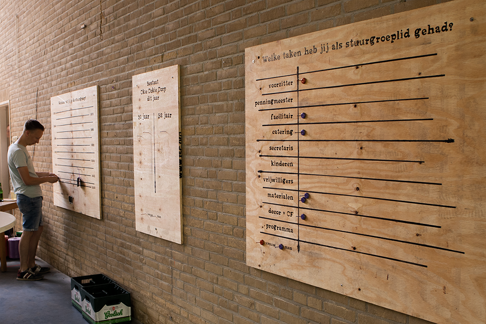 Bij de interactieve wand werden oude en huidige vrijwilligers uitgenodigd om deel te nemen met hun eigen herinneringen en momenten. Welke jaar hadden ze meegedaan en wat deden ze die jaren bij Okie Dokie. Zo ontstond een gezamenlijk beeld van momenten, activiteiten en ervaringen door de jaren heen.